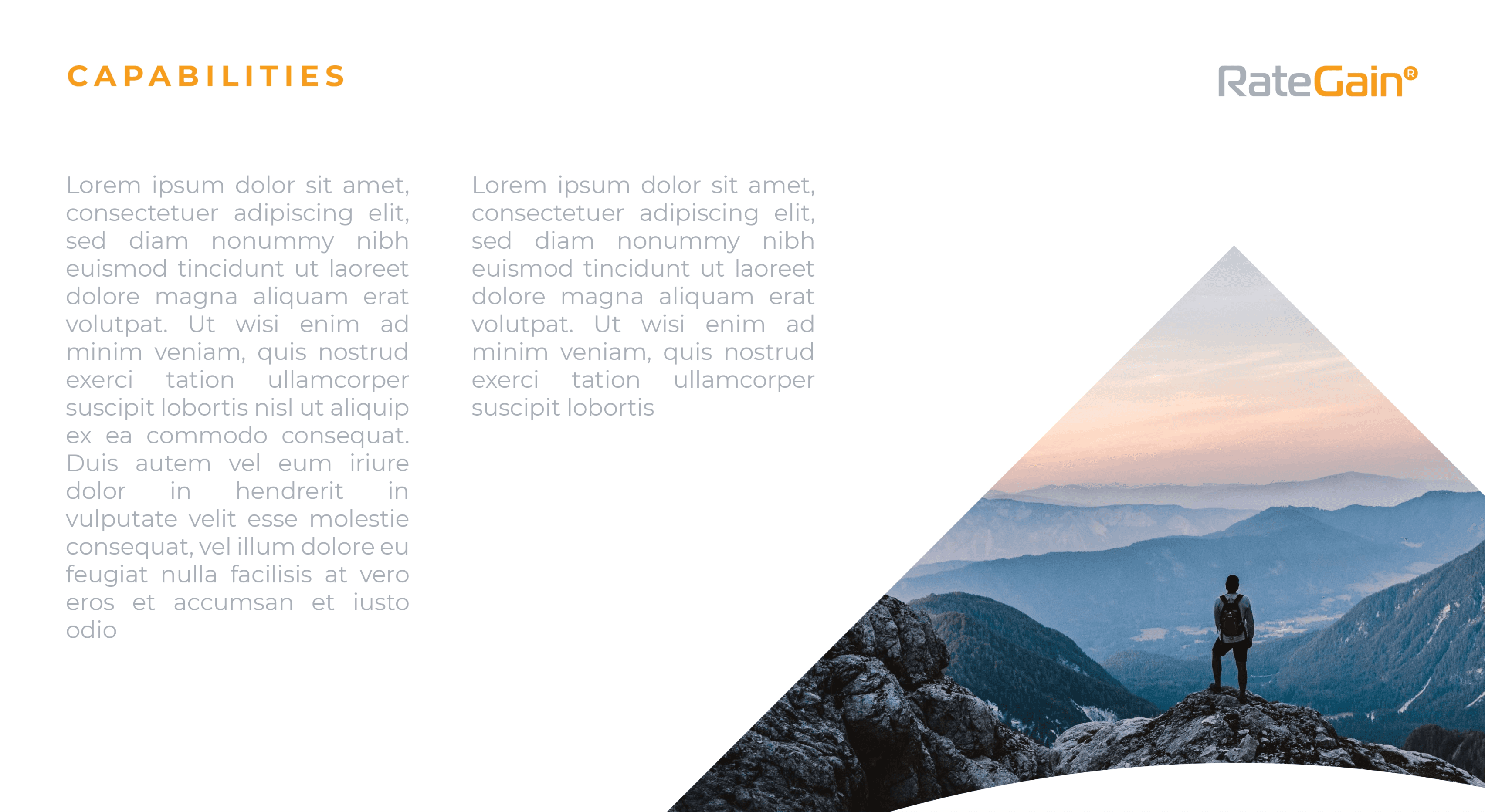 The key visual element offers limitless versatility, enabling it to be used in various ways—whether masked within an image, integrated seamlessly into graphics, or utilized as a standalone visual component in branding. This adaptability ensures consistent branding across multiple platforms and enhances RateGain’s visual communication strategy.