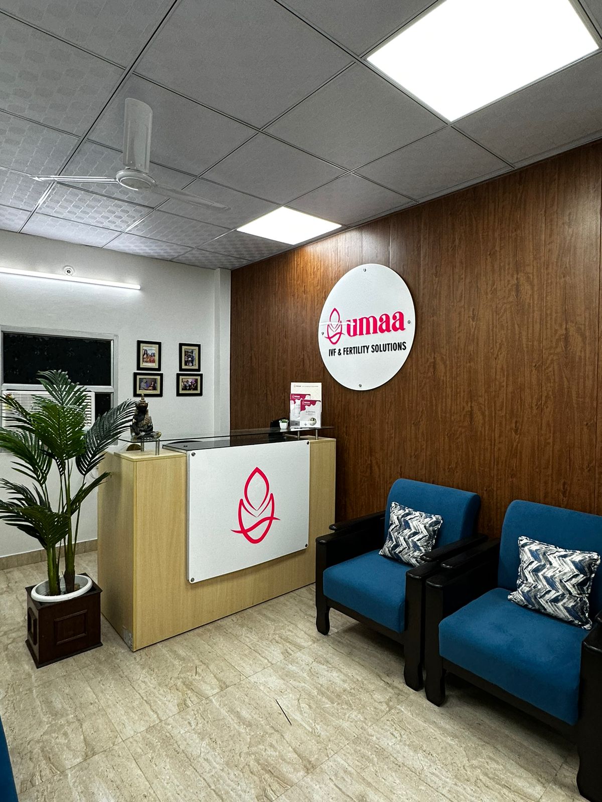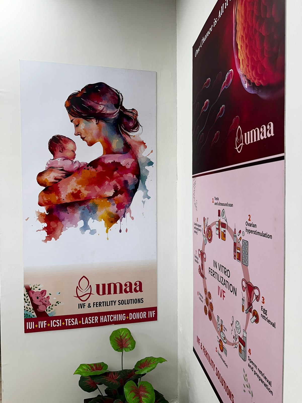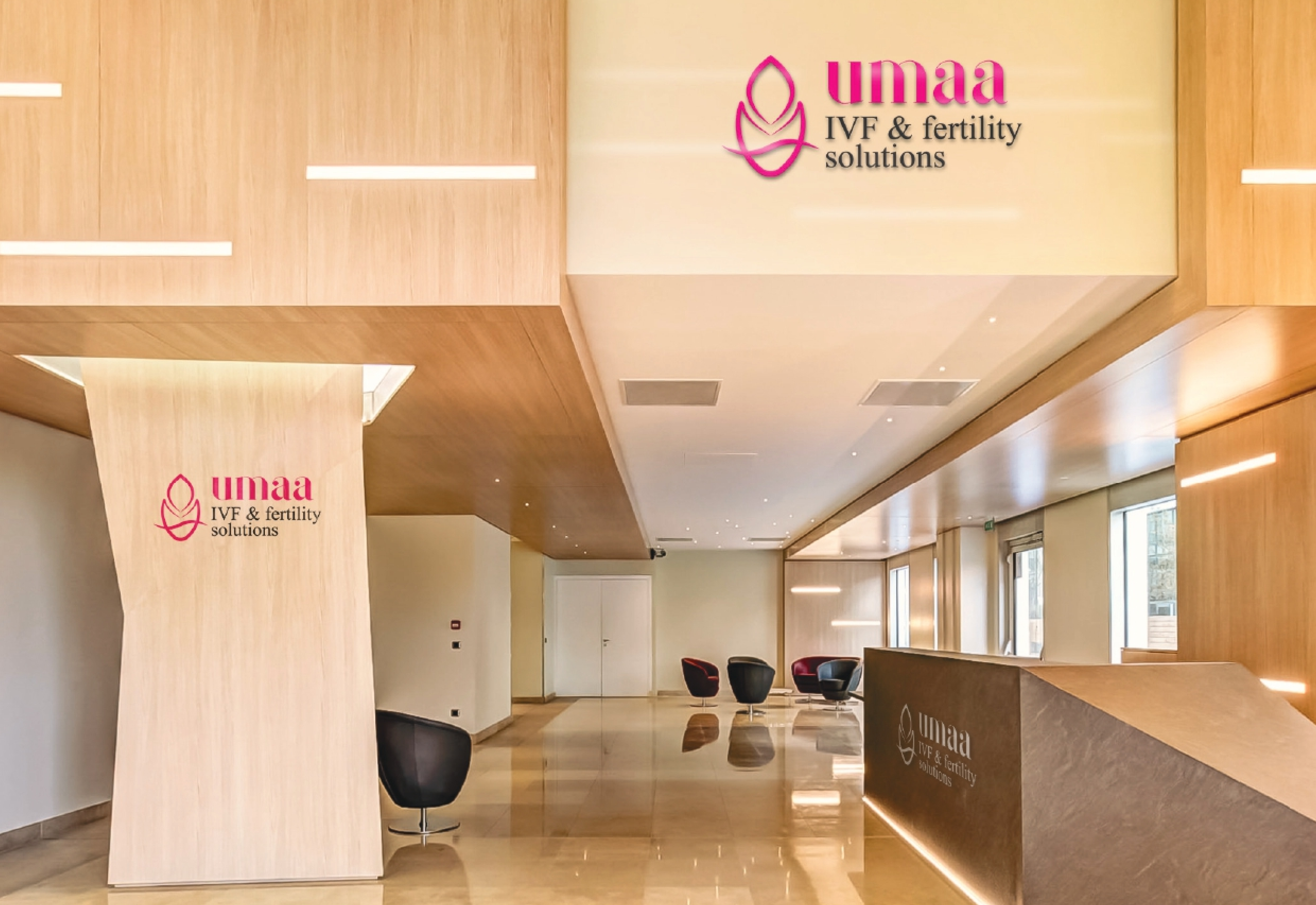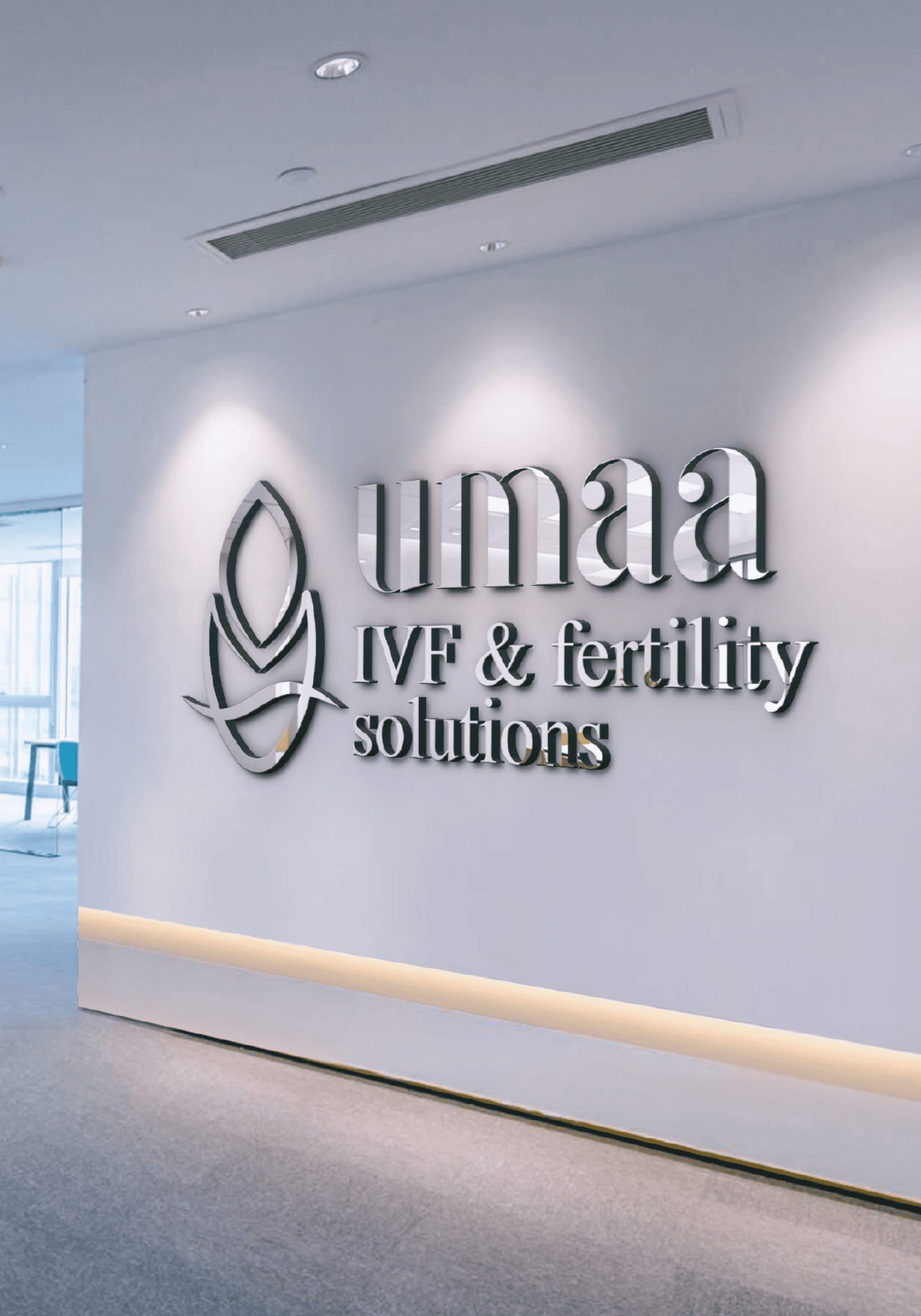 The logo for Umaa IVF & Fertility Solutions is now fully integrated into the center, bringing the brand to life. It is visible on signage, marketing materials, and digital channels, reinforcing the center’s identity and values. The logo’s presence strengthens the brand's impact and fosters a connection with those seeking fertility solutions.